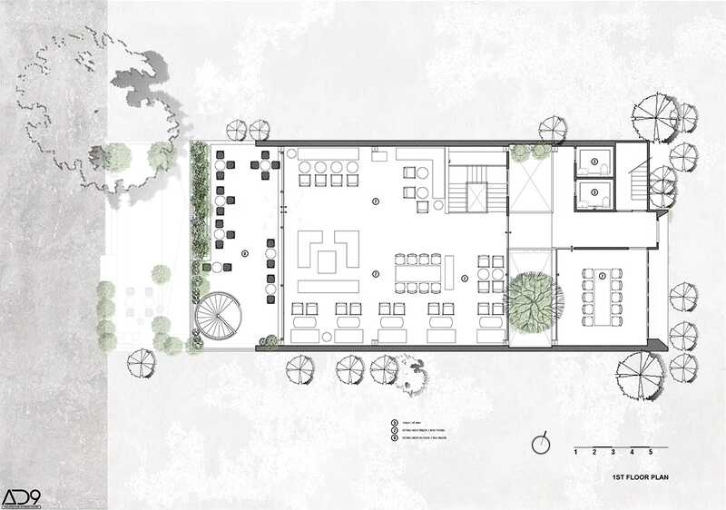 Anna Cafeteria là dự án của AD9 Architects được thiết kế vào giữa năm 2018 và hoàn thành vào cuối năm 2019. Hình thái kiến trúc và kết cấu của dự án dựa trên các hình khối hình học cơ bản, ưu tiên không gian dành riêng cho khách đắm mình và thưởng thức cà phê. được mở rộng theo chiều ngang đến mức tối đa. Mặt bằng bao gồm các lớp đan xen liên tục một cách tự nhiên, trong đó thiên nhiên là điểm kết nối mang lại sự cân bằng và hài hòa. Những lớp này còn tạo nên sự hài hòa về ánh sáng và màu sắc cho mắt.