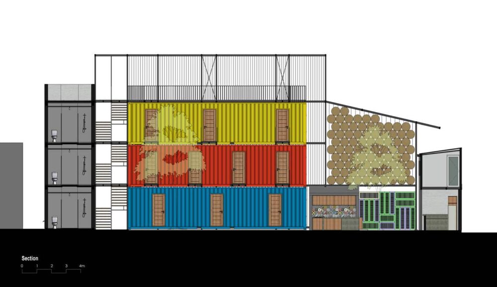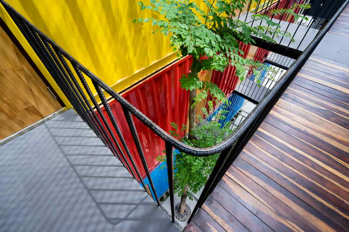 Bằng cách sử dụng các container vận chuyển cũ, khung thép và cây xanh, giàn dây leo, Ccasa Hostel đã mang lại cảm giác vừa mạnh mẽ, công nghiệp vừa hài hòa, tự nhiên.