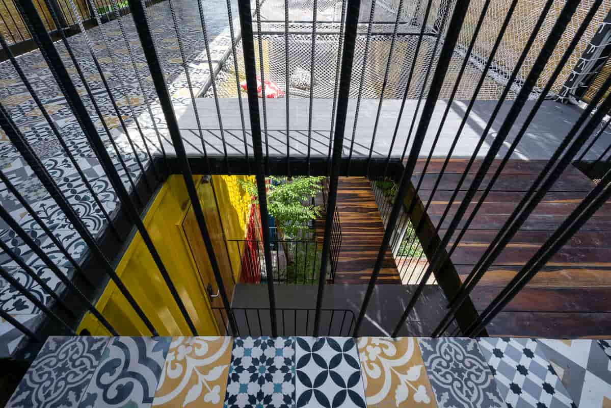 Ngoài ra, gạch bông, cửa sổ gỗ cũ, thúng phẳng, xi măng mộc mạc cũng được sử dụng khéo léo để thu hút sự chú ý và gợi nhớ một số hình ảnh kiến trúc Việt Nam xưa.