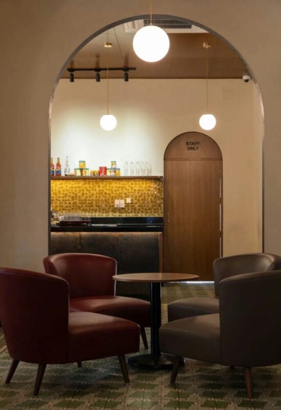 Những phần sàn nhà bị xuống cấp được thay thế bằng loại gạch lát mới dựa trên hoa văn gạch cũ. Nơi đây trở thành khu vực quầy pha chế, thưởng thức đồ uống và vui chơi cho trẻ em.