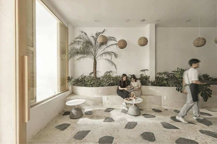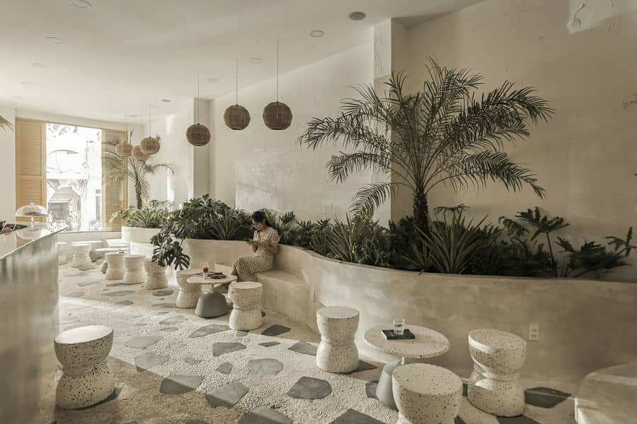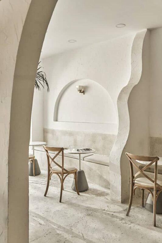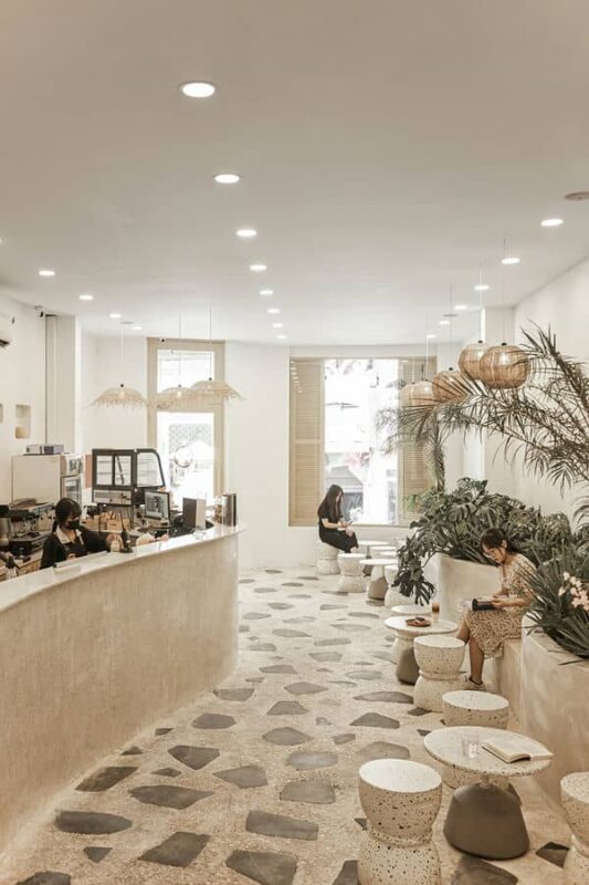 Vòm Coffee là dự án mới nhất trong chuỗi dự án cửa hàng cà phê được Emem Design hoàn thành trong năm 2020. Lấy cảm hứng từ bảng màu trung tính ấm áp của cảnh quan Địa Trung Hải. Emem tối giản cả sơn và nội thất đồng thời làm ấm không gian bằng gỗ và các vật liệu tự nhiên như cây cối, đá và terrazzo với các mẫu hình học. Đó thực sự là một vở kịch của cuộc sống bên trong và bên ngoài của phong cách địa trung hải.
