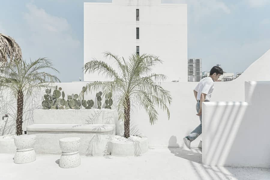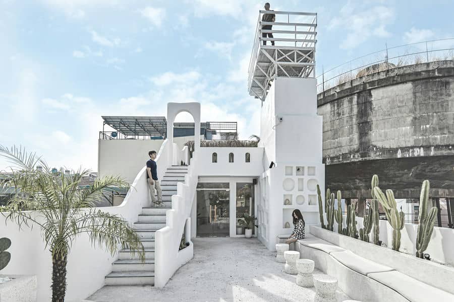 Điểm nhấn đắt giá nhất nằm ở sân thượng với không gian hoàn toàn ngoài trời. Một mái che hoàn thiện từ thân gỗ nhỏ chắc chắn sẽ mang lại cảm giác thật nhất về không gian cà phê Địa Trung Hải.