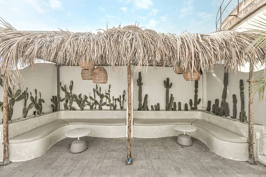 Đặc biệt trong không gian Vòm là những vật liệu tự nhiên, gần gũi với kiến trúc Việt như mây, tre, lá được sử dụng hài hoà để hoàn thiện nên không gian mang phong cách có phần châu Âu: Coastal. Không chỉ tìm thấy trong nội thất, hầu hết các chi tiết decor tại Vòm đều mộc mạc bởi sử dụng những vật liệu kể trên.