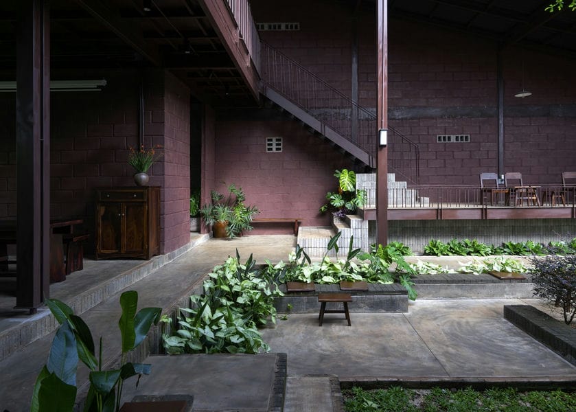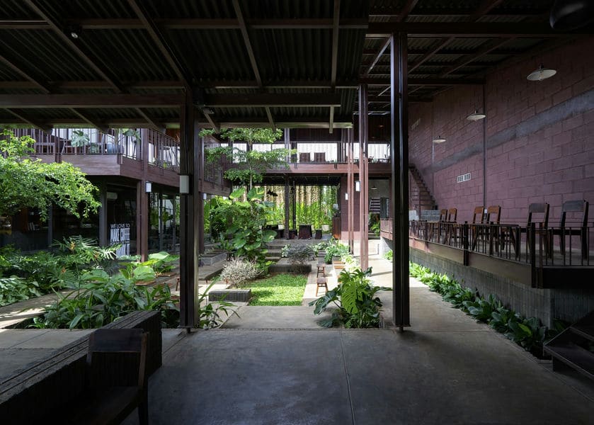 Với toàn bộ không gian xoay quanh một khoảng sân trung tâm rộng lớn, các kiến trúc sư hướng đến việc tạo ra một bầu không khí vừa ấm cúng, tập thể vừa cởi mở, thể hiện bản chất tên Xã cafe, trong “Xã” (có nghĩa là “cộng đồng” trong tiếng Việt) – dự án nhằm đạt được cảm giác hài hòa trong khi vẫn giữ được sự phong phú và cá tính của từng không gian riêng biệt.