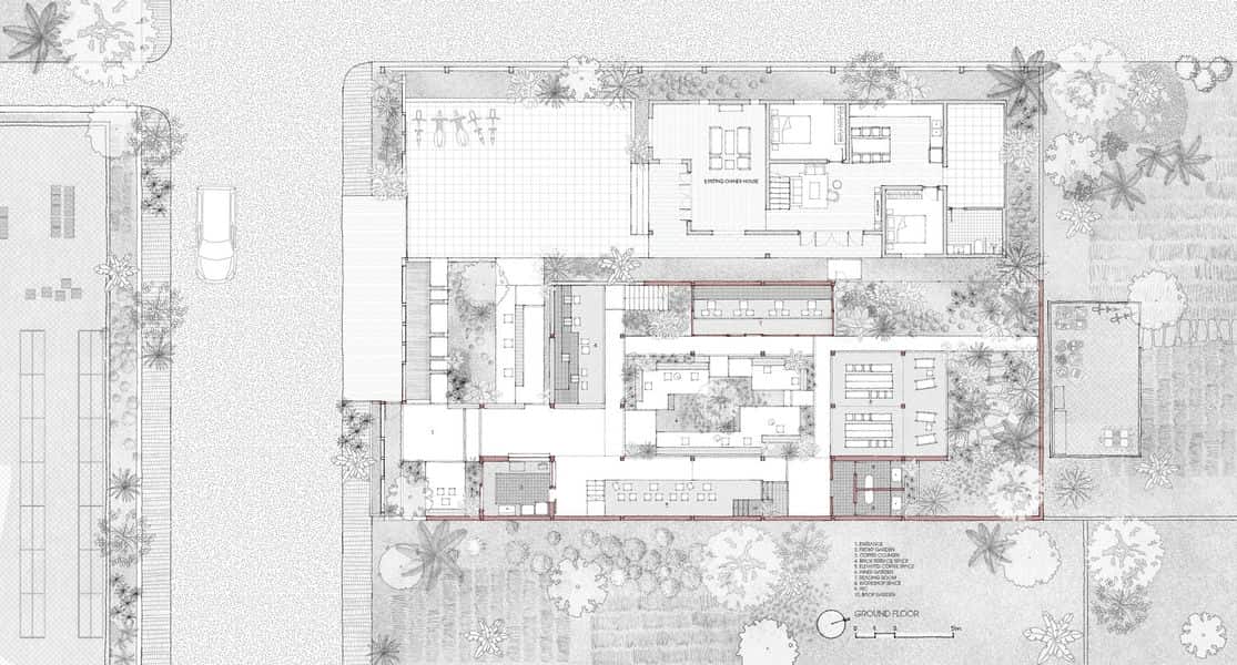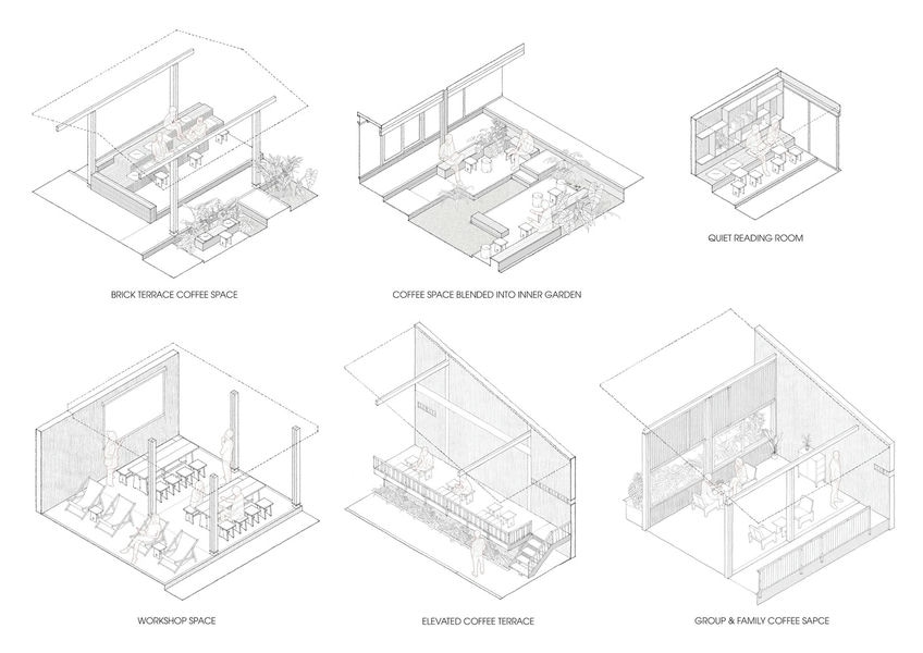 Các kiến trúc sư hướng tới một cấu trúc “lỏng lẻo” để duy trì tính liên tục và đa dạng trong trải nghiệm cà phê. Các cân nhắc về độ cao, kích thước, chiều cao và cảnh quan của mặt đất đã được thực hiện để đảm bảo không gian quán cà phê có thể phục vụ đồng thời nhiều người dùng khác nhau, cho dù là dành cho hội thảo, đọc sách, họp nhóm hay họp mặt gia đình.