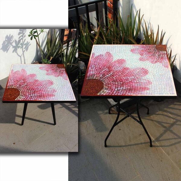 Bàn vuông kính mosaic MT0034H hồng, Bàn trà, bàn cafe ngoài trời – BST hoa cúc thược dược