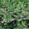 Hoa hình chiếc kèn với sáu cánh hoa và ống đài hoa màu xanh lá cây đến vào mùa hè. Hoa màu tím, màu oải hương hoặc màu trắng, thường thu hút bướm và chim ruồi. Cây nở từ mùa hè cho đến khi có dấu hiệu đầu tiên của sương giá. |