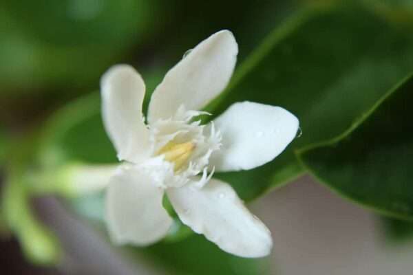- Hoa | Hoa Mai Chỉ Thiên mọc thành cụm khoảng 2 – 5 bông. Chiều cao: 20 – 25 cm. Hoa có hình ống có 5 cánh tràng màu trắng, tâm màu vàng, với các phần phụ dạng sợi. Hoa nở hoa quanh năm và có mùi thơm thu hút bướm, ong và chim.