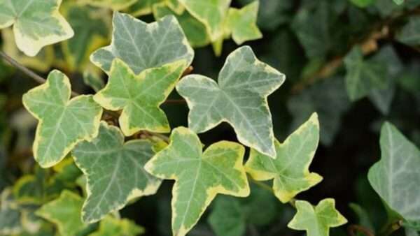 - Cây thường xuân lá xanh đậm, nhạt xen kẽ có năm cạnh. Gân lá màu trắng kem hoặc xám trắng.