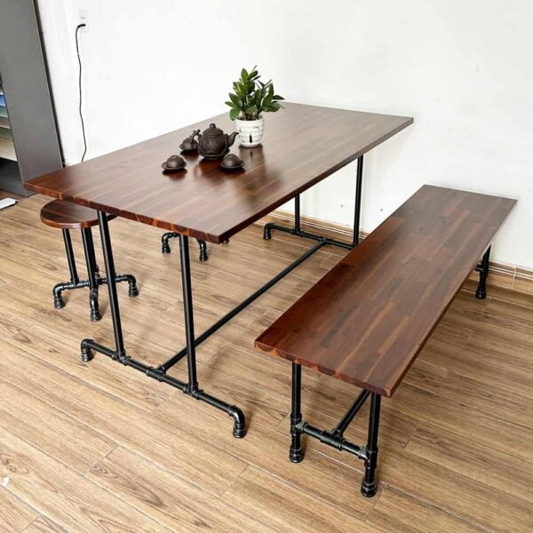 Ghế sắt băng dài GHE904 toát lên vẻ đẹp độc đáo bởi chân ống nước và sự mộc mạc, gần gũi mang phong cách industry. Chân ống nước tiện ren lắp ráp từ các phụ kiện ống nước trong phòng cháy chữa cháy. Ghế chân ống nước được ưa chuộng sử dụng trong nhiều không gian khác nhau từ ghế băng bàn ăn, ghế ban công hay các quán ăn, nhà hàng… mang phong cách sân vườn, industry…
